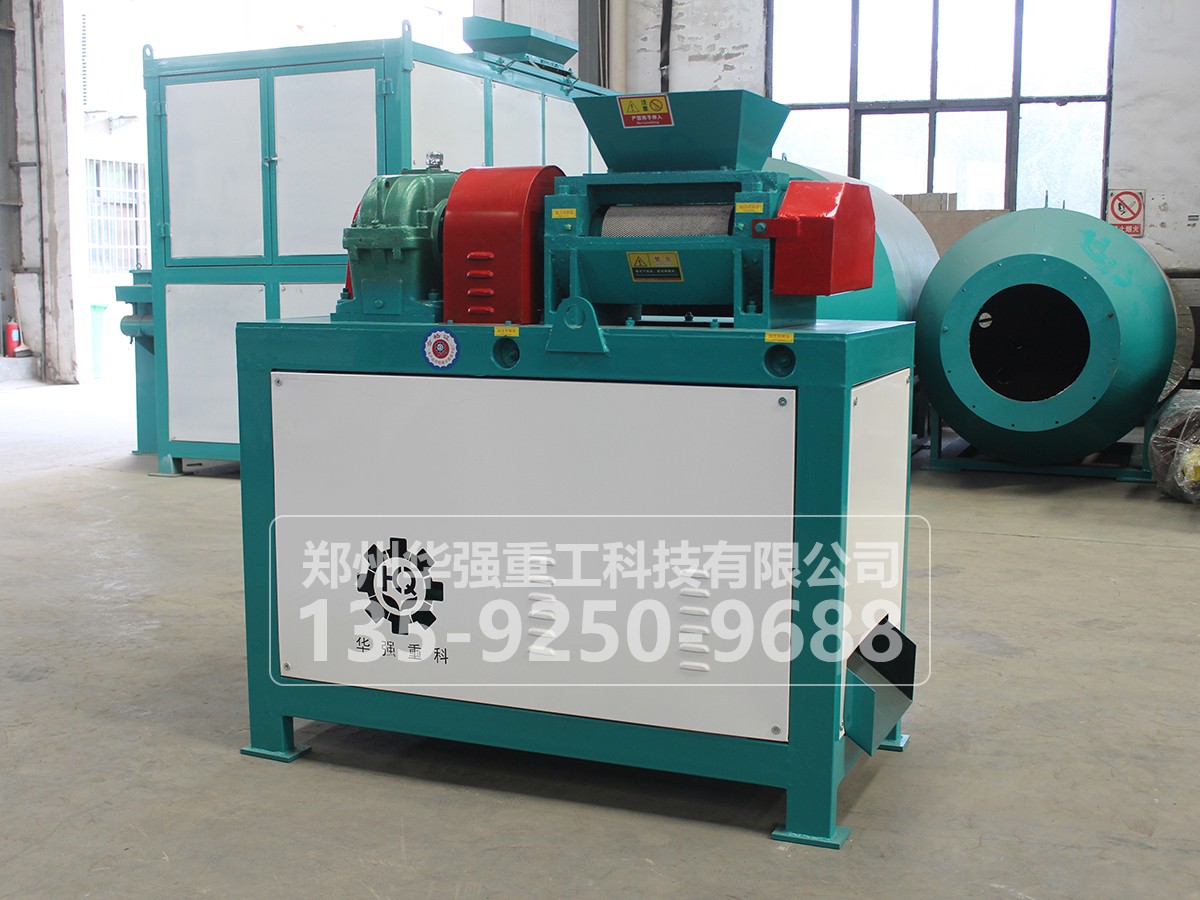 進料斗進入,經高壓輥體相對擠壓成型,脫模后自流到輥體下部的破碎成型工作室。破碎成型的動力是由主動壓輥軸的鏈輪經鏈條傳動給一對破碎滾軸進行相對運